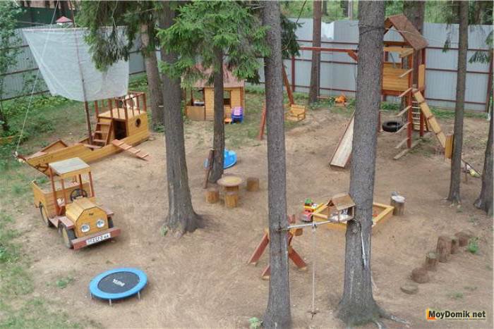 Детей просто инстинктивно тянет к натуральным материалам, к дереву, песку, воде. Так что до начала строительства надо позаботиться об их наличии.