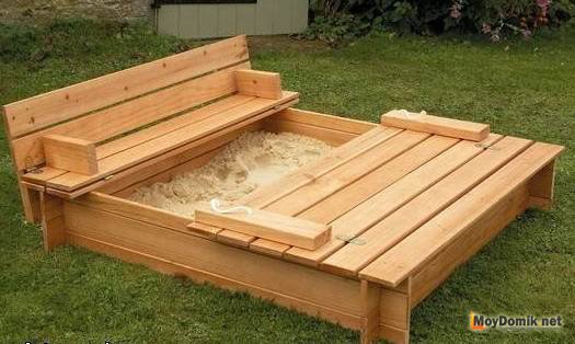Чтобы песок не смешивался с грунтом, на него расстилают любой изолятор типа нетканого материала. В песочнице необходимы сливные отверстия, служащие дренажом при сильном дожде. А лучше сделать песочницу с крышкой. Для защиты от солнца устраивается крыша в виде традиционного грибка или можно соорудить совсем простой навес.