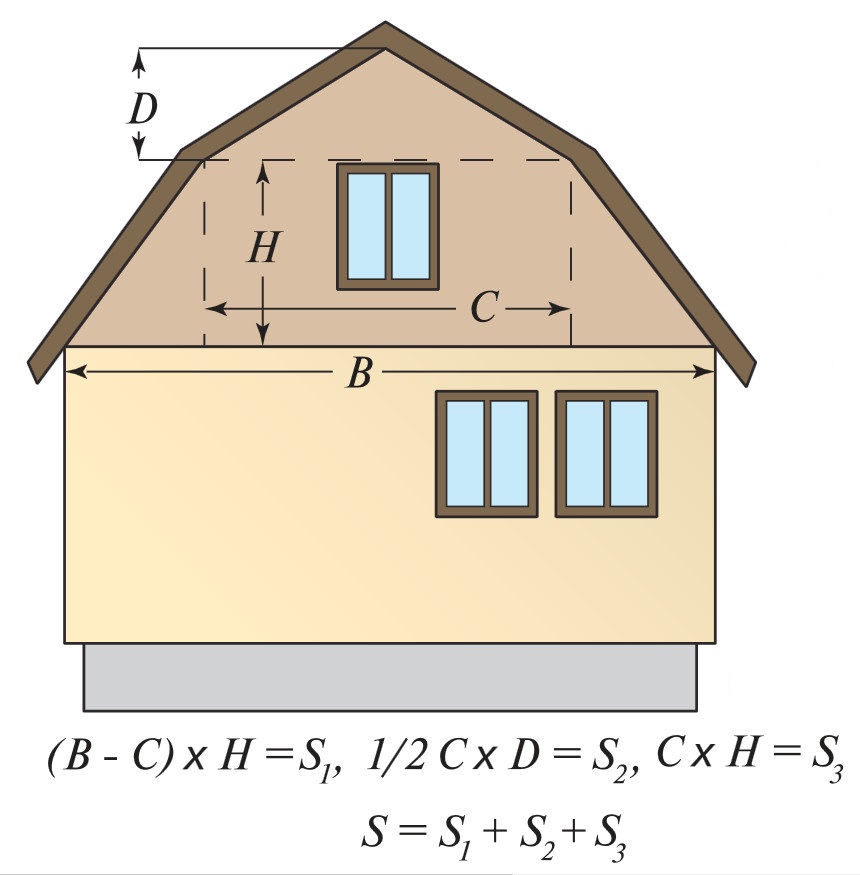 Подробно опишем как сделать расчет площади сайдинга по стенам и фронтонам.