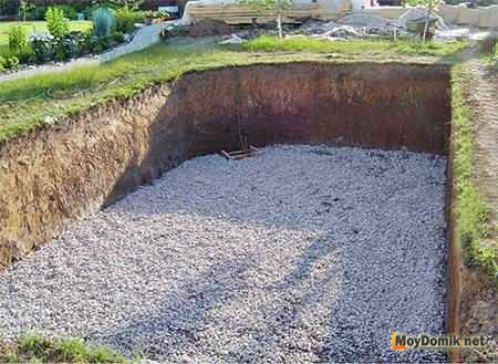 - увеличить габариты котлована. Они должны быть больше размеров будущей чаши. Это делается для того, чтобы разместить там техническое оборудование и обустроить подушку под бетон. А также для возведения опалубки.