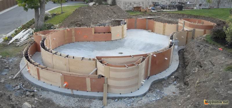Поскольку строительство бассейна в доме обычно происходит вместе с закладкой фундамента и возведением самого дома, то в этой статьи будем рассматривать, как сделать бассейн из бетона, на открытом участке.