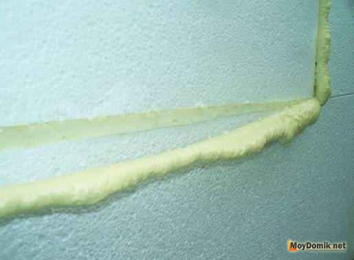 - заделка швов. Швы толщиной более 10 мм нужно заделать обрезками пенопласта. те, которые меньше 10 мм. можно задуть пеной;