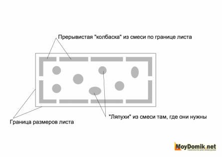- на лист наносится клеевой раствор. Способ нанесения показан на схеме;