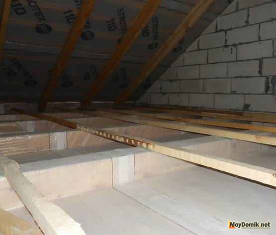 обязательным использованием пароизоляции. Пирог снизу обшивается гипсокартоном,