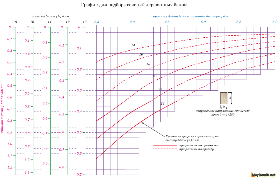 На величину прогиба оказывает влияние и порода древесины, из которой изготовлена балка.