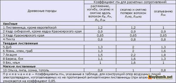 Если используется не сосна, тогда значение следует скорректировать на переходящий коэффициент (приведен в СНиП II-25-80 (СП 64.13330.2011)).