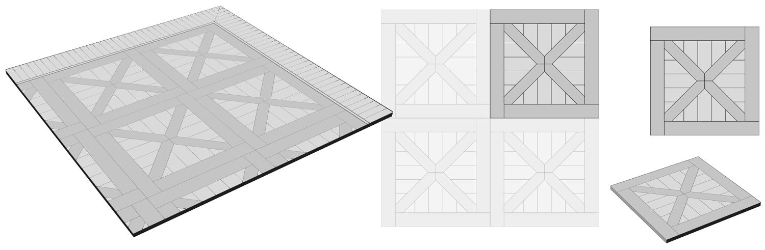 Художественный модульный паркет – это отдельные фрагменты (блоки, модули) орнамента, которые собираются в общую композицию геометрического рисунка паркетного пола. Наборные модули могут состоять из планок разных пород дерева. В таком случае, древесина должна иметь схожие свойства, чтобы исключить деформацию из-за разной влажности или усушки.