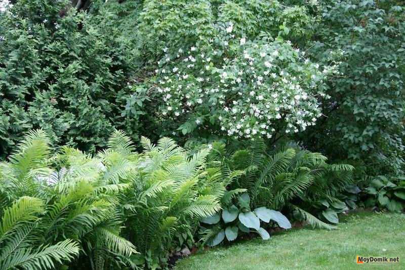 Красиво дополнить композицию тенистого сада, можно с помощью декоративнолиственной цветочной полосы, сформированной из теневыносливых кустарников и цветов.