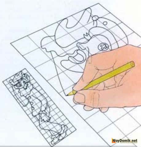 Путем масштабирования по клеткам можно менять пропорции рисунков. Например, исходная форма не нравится, и вы хотите ее изменить. Для этого, при переносе рисунка сохраните одну из сторон в исходном размере, а вторую в новом квадрате увеличьте.