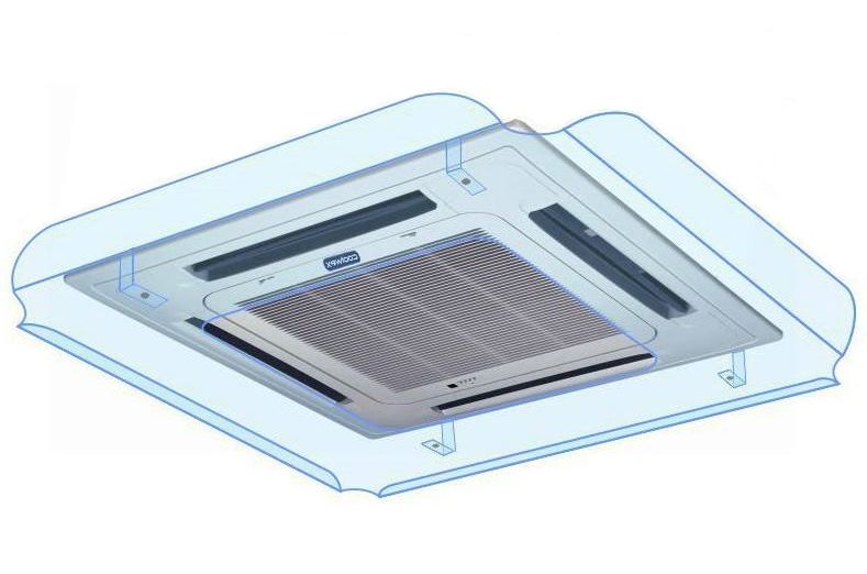 Экран для потолочного кондиционера изготавливается по тому же принципу, только сгибать нужно все 4 стороны выкройки, а крепить к потолку.