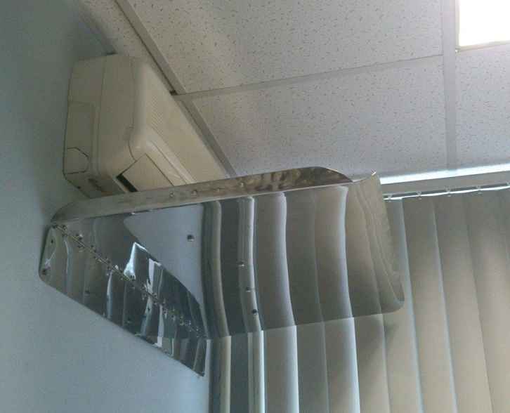 Отражатель или экран-дефлектор для кондиционера (именно такое его правильное название) – это отсекатель потока воздуха или просто эффективный и, весьма бюджетный способ изменить поток кондиционированного воздуха. Установленный под определенным углом к поверхности дефлектор позволяет перенаправить холодный воздух на потолок или стены и таким образом перераспределить его в помещении более рациональным образом.