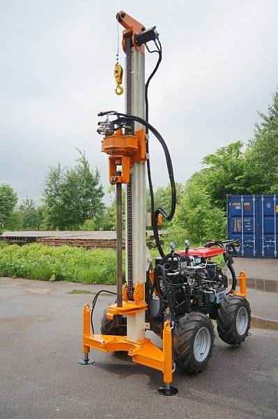 На фото показана малогабаритная буровая установка МГБ50П-02С с подвижным гидравлическим вращателем, производства фирмы Горизонталь.