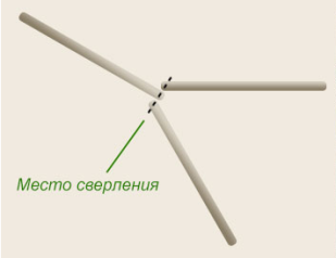 Треногу можно сделать из дерева (исключаются сучки) или металлической трубы (или профиля). Длина бруса или трубы должна составить 4-5 м. Как изготовить треногу для бурения видно на схеме.