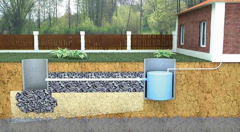 Для устройства канализации самотечных линий используются трубы диаметром 110-150 мм. Трубы укладываются под углом в 3° от дома к септику, из которого всё будет откачиваться по мере потребности.