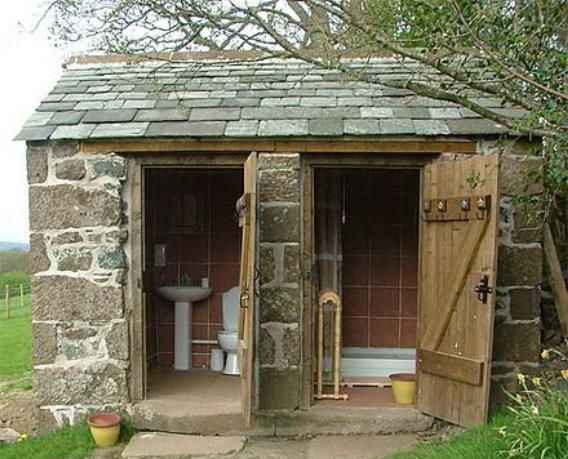 Уличный душ из камня или кирпича уже не назовешь временным летним душем, поскольку обычно к нему стараются провести водопровод и электричество. Душевой домик из кирпича, при правильно организованном сливе эксплуатируется довольно долго.