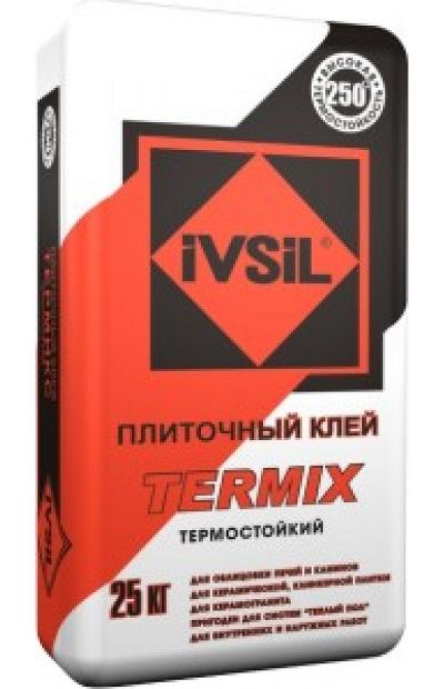 Ivsil Termix (Россия, 460 руб./уп.). Клей повышенной эластичности. Температура эксплуатации до 250 °С, что позволяет использовать его на поверхностях печи вдали от топки и на каминах с закрытой топкой. Клей
