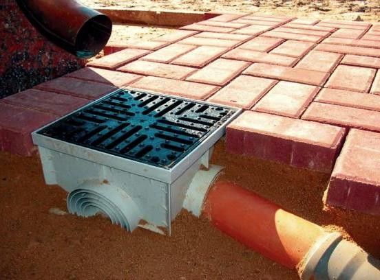 В случае, если планируется устройство ливневой системы, на конец пленки, противоположный от стены здания укладывается труба, которая засыпается щебнем. Он защищает трубу от забивания. Также устанавливается ливнеприемник и укладываются трубы ливневки.