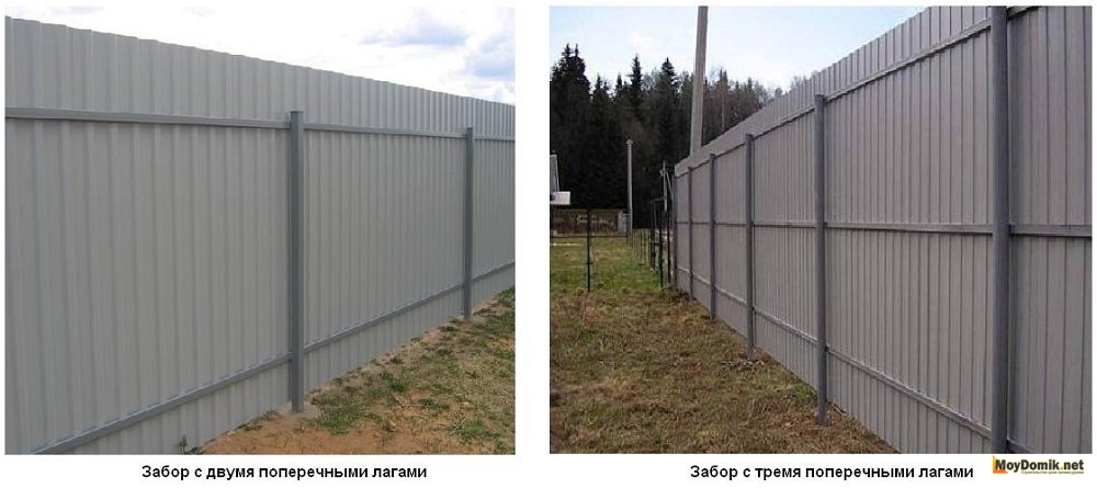 - Мастера советуют при высоте забора до 2 000 мм использовать 2 лаги. Причем их расстояние от краев профнастила составляет 300 мм.