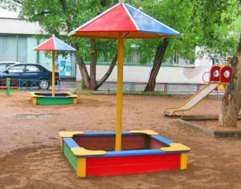 С песочницы начинается устройство полноценной детской игровой площадки, состоящей из многих элементов (горки, качелей, домика), которые будут добавляться по мере взросления ребенка.