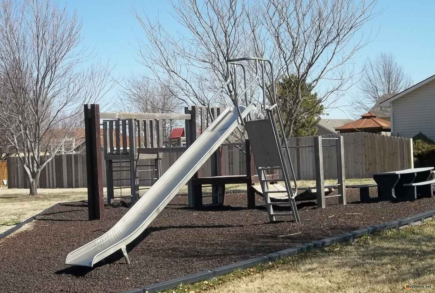 Следует помнить, что у металлического желоба есть один существенный недостаток, он очень сильно нагревается летом – спуск по разогретой поверхности может привести к появлению ожога, а также сильно охлаждается зимой, что также не доставляет радости малышам.