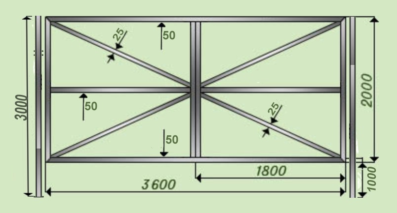Чертеж ворот из профлиста является наглядным пособием для расчета материала. Для изготовления понадобится: