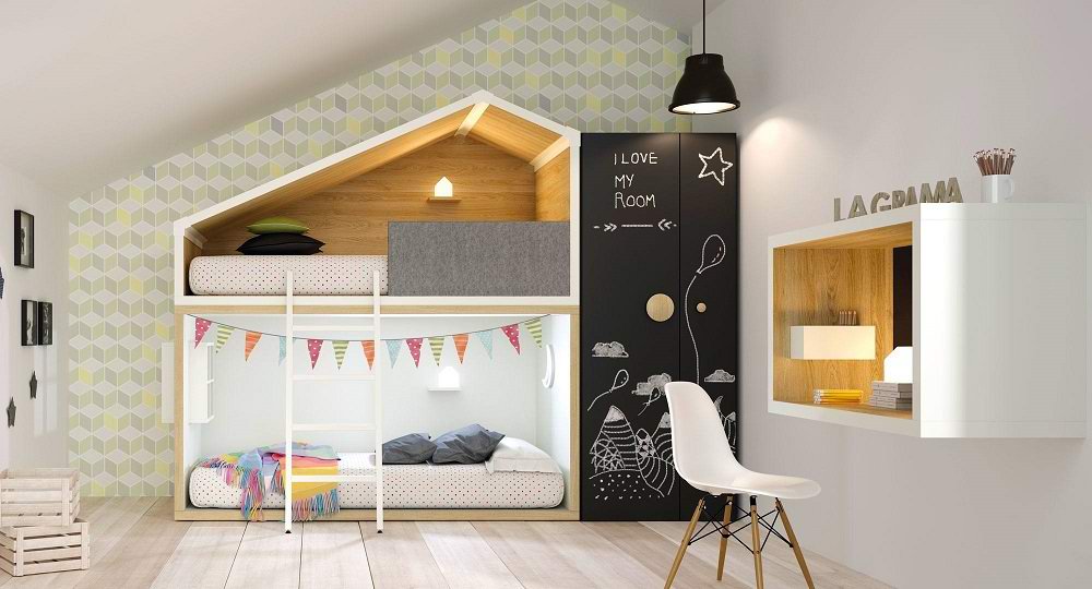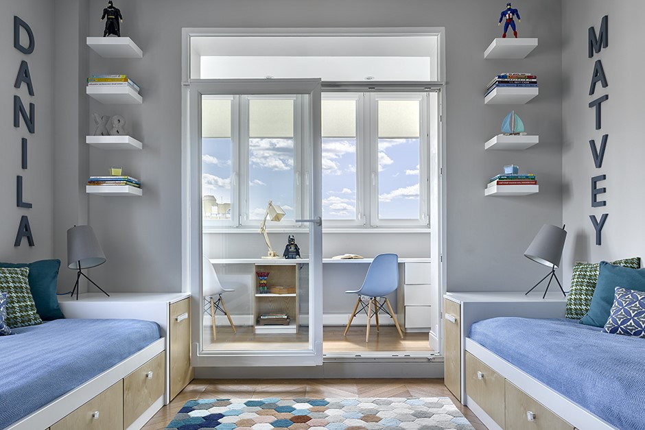 Классика жанра – украшать детскую дошкольников изображениями любимых героев и игрушек: машинки, роботы, феи или пони. А вот современным школьникам в спальной зоне скорее понравятся элементы обстановки ярких цветов и необычных конструкций на фоне нейтральной цветовой гаммы (например, светло-серой).