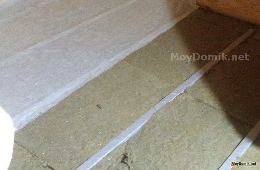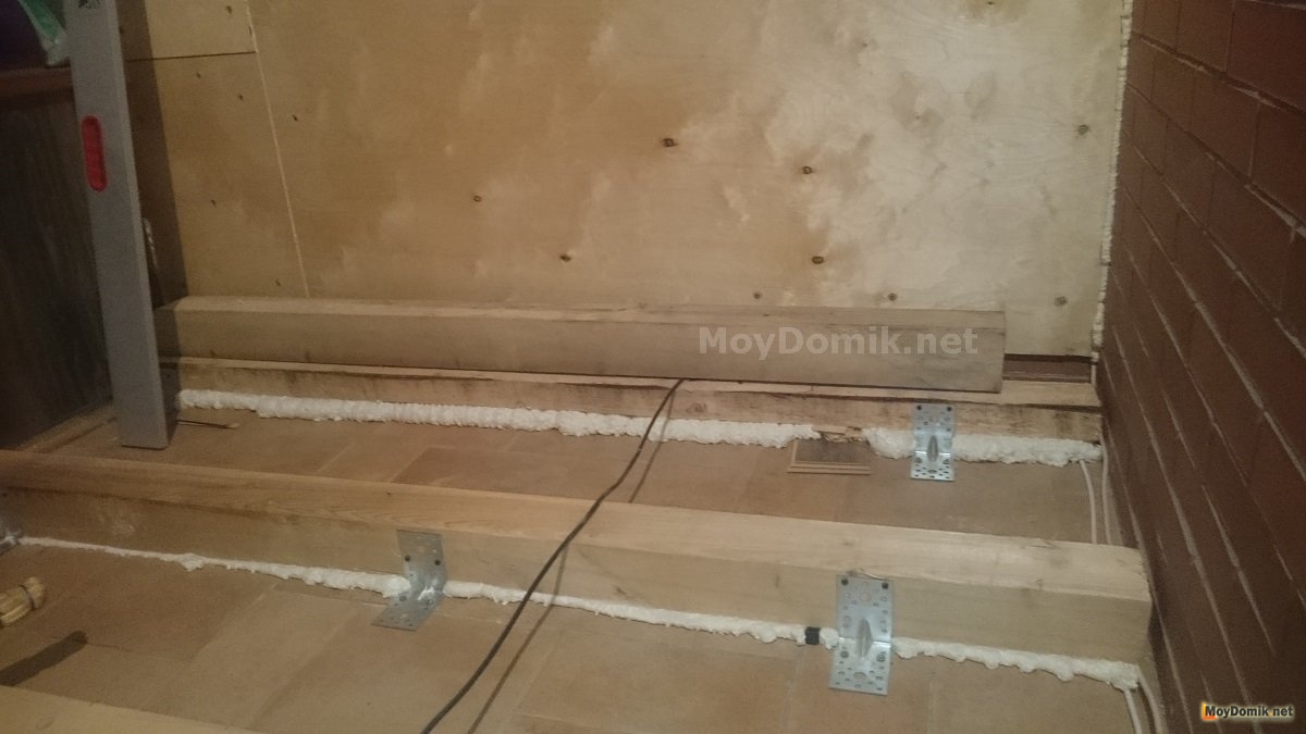 мм, для ваты и керамзита – 600 мм.). Брусья крепятся к полу дюбелями. При