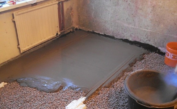 - заливка армированной стяжки, при этом толщина цементно-песчаной стяжки должна быть не менее 5 см;